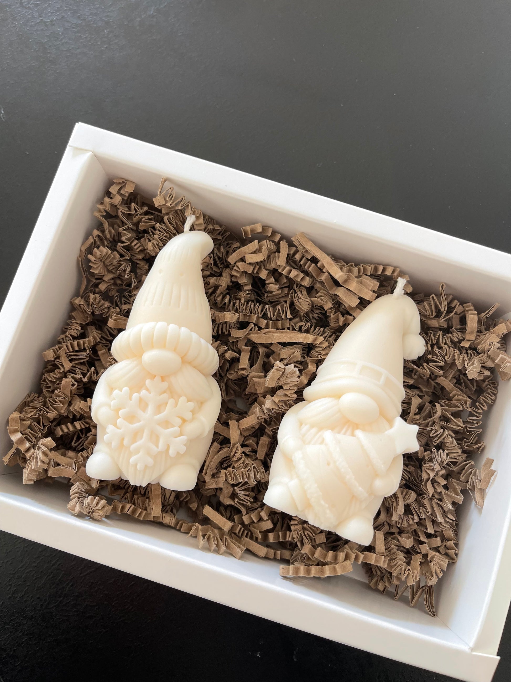 Découvrez l’esprit magique des fêtes avec notre adorable duo de bougies Gnomes de Noël, entièrement façonnées à la main dans notre atelier.